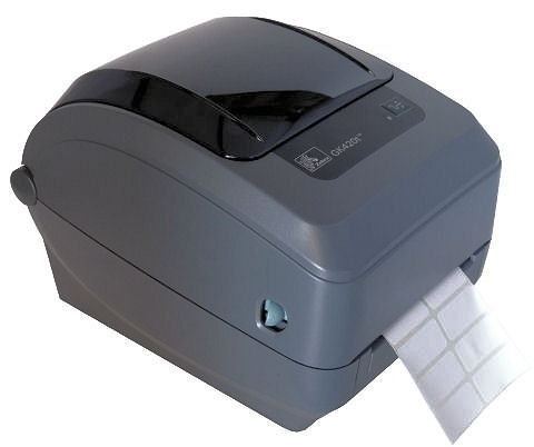 This dependable and compact Zebra GK420t printer makes use of a ribbon to print barcodes.
